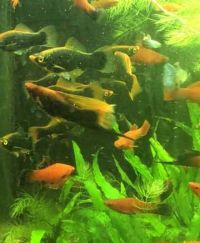 Пецилии, Меченосцы, Гуппи, растения и креветки