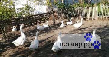 Гусята породы линда, 250 руб. шт. недельные. На 2 фото, им уже месяц, на 3 фото их родители. Через полгода тушка примерно 3 кг.