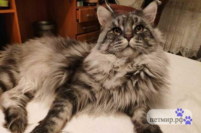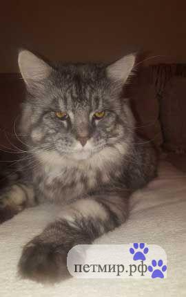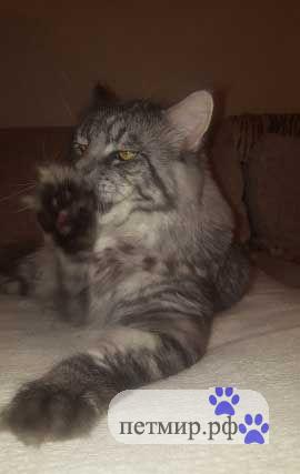 Приглашаем на вязку кошечек. О коте: 3 года, развязан, окрас серый, глаза жёлтые, вес 8 кг, с прививками, очень ласковый.
